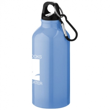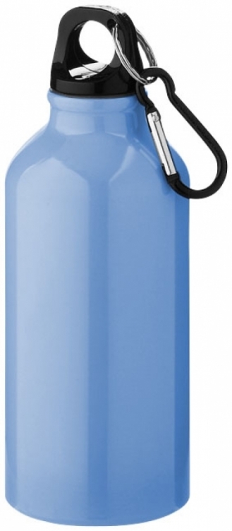 Bidon z karabińczykiem Oregon. Butelka z pojedynczymi ściankami oraz zakręcanym wieczkiem. Karabińczyk nie nadaje się do wspinaczki. Pojemność 350 ml. Aluminium.