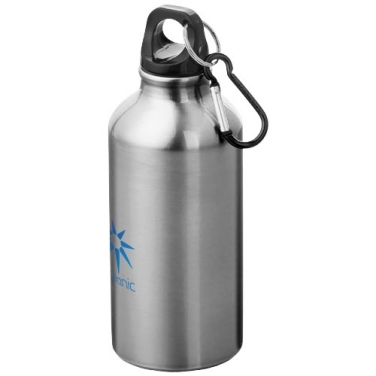 Bidon z karabińczykiem Oregon. Butelka z pojedynczymi ściankami oraz zakręcanym wieczkiem. Karabińczyk nie nadaje się do wspinaczki. Pojemność 350 ml. Aluminium.