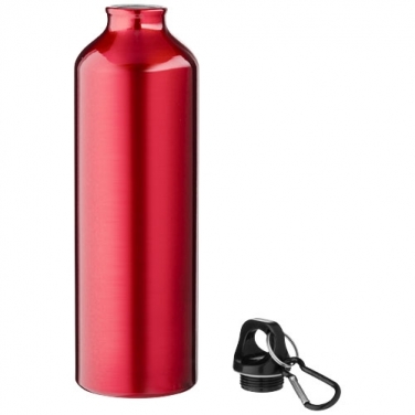 Bidon z karabińczykiem Pacific. Butelka z pojedynczymi ściankami oraz zakręcanym wieczkiem. Karabińczyk nie nadaje się do wspinaczki. Pojemność 770 ml. Aluminium.