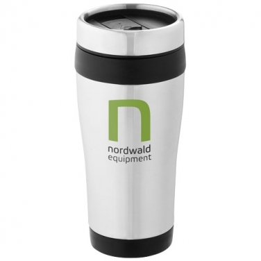 Kubek termiczny Elwood. Kubek o podwójnych ściankach z przekręcanym wieczkiem i przesuwanym zamknięciem. Pojemność 470 ml. Stal nierdzewna na zewnątrz, plastik wewnątrz.