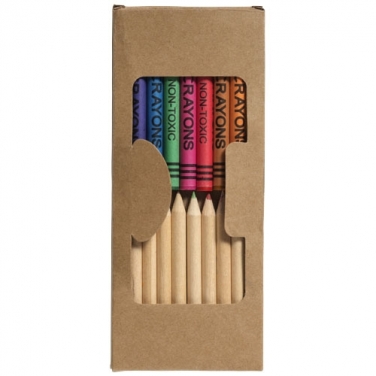 Zestaw kredek 19-częściowy. Zestaw składa się z 9 kredek świecowych i 10 kredek w kartonowym opakowaniu z plastikowym okienkiem. Nadruk niemożliwy na poszczególnych elementach. Karton.