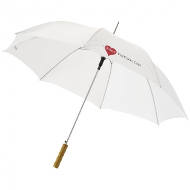 Parasol automatyczny 23''. Parasol 23' z metalowym trzpieniem, szkieletem oraz drewnianą rączką. Poliester.
