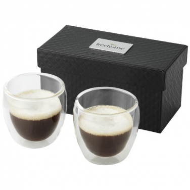 Zestaw do espresso Boda 2-częściowy. Zestaw do espresso zawiera dwie szklanki o pojemności 80 ml o podwójnych ściankach termoizolujących. Zestaw zapakowany w eleganckie pudełko upominkowe. W zestawie tabliczka grawerska. Szkło.