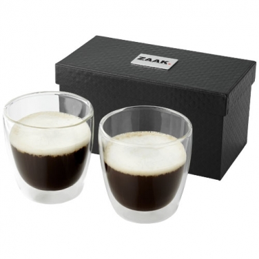 Zestaw do kawy Boda 2-częściowy. Zestaw do kawy zawiera dwa kubki o pojemności 200 ml o podwójnych ściankach termoizolujących. Zestaw zapakowany w eleganckie pudełko upominkowe. W zestawie tabliczka grawerska. Szkło.