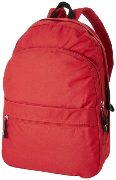 Plecak Trend. Modny i wygodny plecak z regulowanym ramionami, dwiema przegrodami na zamek błyskawiczny oraz dwiema kieszeniami przednimi - jedną na zamek, drugą zaś na rzep. Poliester 600D.