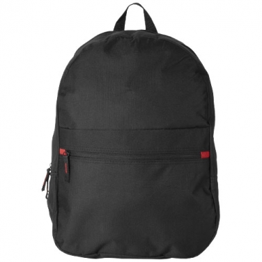 Plecak Vancouver. Plecak z czerwonymi detalami, zamykaną na zamek główną kieszenią, zamykaną na zamek przednią kieszenią i kieszonką zamykaną na rzep. Regulowane, wyściełane szelki oraz wzmocniony uchwyt do przenoszenia. Poliester 600D.