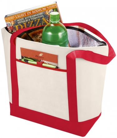 Torba termoizolacyjna na zakupy Lighthouse. Kieszeń główna zapinana na zamek, podwójne uchwyty. Długość uchwytów 23,5 cm. Z przodu otwarta kieszonka z pętelką na długopis. Nie zawiera akcesoriów. Polipropylen non woven 80 g/m².