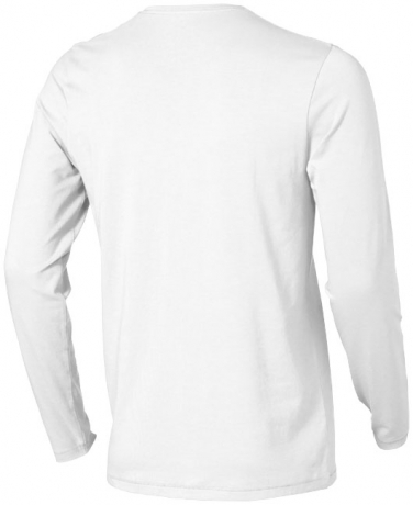 Koszulka z długim rękawem Ponoka. Szwy boczne.Satynowa taśma wzmacniająca od ramienia do ramienia.Kołnierzyk z tego samego materiału.Logo nadrukowane na plecach w kolorze materiału.Wykończenie ściegiem typu pick.Wyjątkowo miękka i elastyczna bałwena. Single Jersey z 95% bawełny organicznej typu ring spun oraz 5% elastanu. 200g/m².