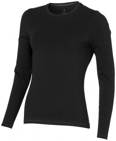 Damska koszulka z długim rękawem Ponoka. Szwy boczne.Wykończenie ściegiem typu pick.Kołnierzyk z tego samego materiału.Logo nadrukowane na plecach w kolorze materiału.Satynowa taśma wzmacniająca od ramienia do ramienia.Wyjątkowo miękka i elastyczna bałwena. Single Jersey z 95% bawełny organicznej typu ring spun oraz 5% elastanu. 200 g/m².