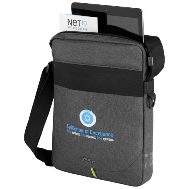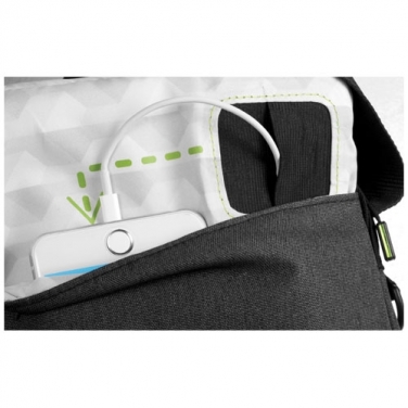 Torba na tablet Power Stretch. Torba siateczkowa z wyściełaną przegrodą główną na tablet oraz specjalnymi kieszonkami z neoprenu na artykuły elektroniczne - jak chociażby iPhone. Jeżeli smartfon odmówił dalszej pracy - wystarczy przeciągnąć kabel przez specjalny port do kieszeni przedniej lub ścianki torby i gotowe - nie trzeba wyciągać ładowarki z torby. Długość pasa na ramię regulowana. Poliester 600D.
