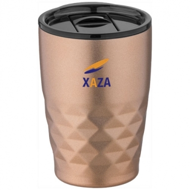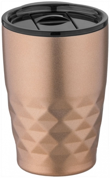 Kubek izotermiczny Geo. Kubek termiczny Geo posiada konstrukcję próżniową z podwójnymi ściankami i miedzianą izolacją, które utrzymują napoje gorące przez 8 godzin, a zimne przez 24 godziny. Taka konstrukcja zapobiega kondensacji na zewnątrz kubka. Łatwe picie, wciskana przykrywka z otwieranym wiekiem. Duży otwór dla wygodnego napełniania i nalewania. Pojemność to 350 ml. Całość zapakowana jest w pudełko upominkowe Avenue. Stal nierdzewna.