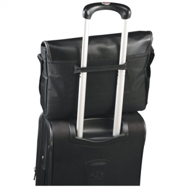 Torba na laptop 15,6” Vault RFID. Stylowa, nowoczesna torba na laptopa 15,6” wyposażona w ukrytą kieszeń z przodu z technologią blokującą sygnał RFID do ochrony Twoich kart kredytowych i paszportu przed kradzieżą tożsamości, wyściełaną przegrodę na komputer i osobną wyściełaną kieszeń na iPada lub tablet. Ochronna klapa z zamknięciem na rzep posiada wewnętrzną kieszeń dla dodatkowej przestrzeni do przechowywania i łatwego dostępu do Twoich rzeczy. Posiada również boczną kieszeń na butelkę z wodą oraz dodatkową, zapinaną na suwak kieszeń z przodu. Podwójna rączka oraz pasek do umocowania na walizce z kółkami z tyłu ułatwia podróżowanie. Dodatkowo torba posiada wyściełany pasek na ramię dla lepszego dopasowania i komfortu. 600D PolyCanvas z akcentami Dobby.