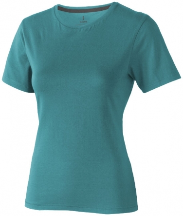 T-shirt damski Nanaimo. Kołnierzyk wykonany z dzianiny ściągaczowej 1x1 rib bez szwów na zewnątrz.Materiał miły w dotyku.Wykończenie ściegiem typu pick.Materiał stabilizowany.Satynowa taśma wzmacniająca od ramienia do ramienia.Materiał przyjazny dekoracji, gładka powierzchnia pod nadruk.Logo nadrukowane na plecach w kolorze materiału.Materiał miły w dotyku.Wykończenie ściegiem typu pick. Splot single jersey ze 100% czesanej bawełny ringspun. 160 g/m².