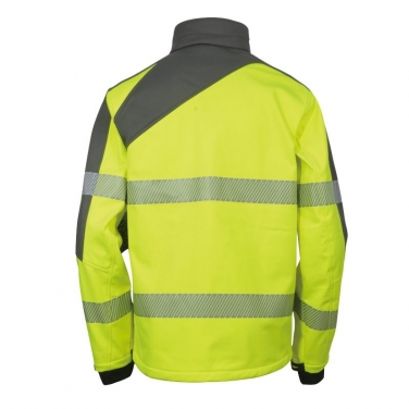 KURTKA SOFTSHELL, OSTRZEGAWCZA O INTENSYWNEJ WIDZIALNOŚCI, (TAŚMA ODBLASKOWA SEGMENTOWA), DOBRA OCHRONA PRZED DESZCZEM ( WALORY MATERIAŁU I SPOSÓB USZYCIA), DOBRZE ODDYCHAJĄCA, ROZMIARY DO 5XL, POMARAŃCZOWO-SZARA, MODEL VWJK267OG