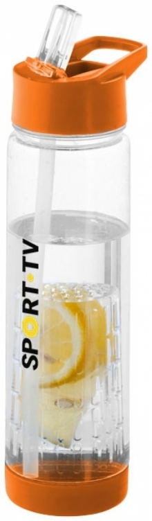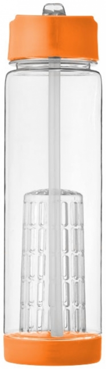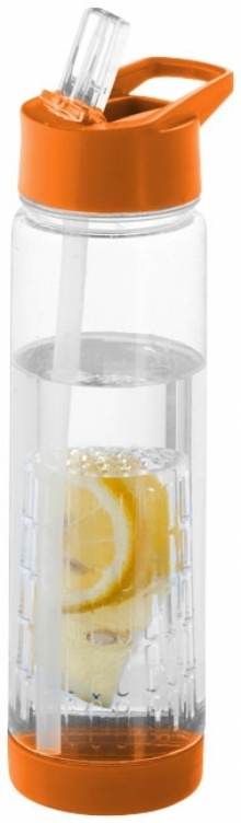 Butelka z koszyczkiem Tutti frutti. Butelka z zakrętką oraz ustnikiem. Zawiera koszyczek na owoce, dzięki czemu można dodać wodzie smaku. Dzięki odkręcanemu denku bez trudu można wyczyścić koszyczek na owoce. Pojemność 740 ml. Eastman Tritan™ wolny od BPA.