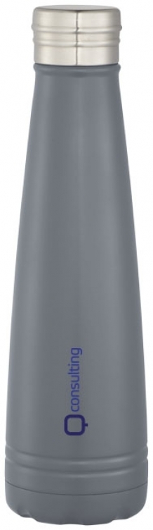 Butelka Duke z miedzianą izolacją próżniową. Butelka Duke z izolacją próżniową i podwójnymi ściankami ze stali nierdzewnej 18/8. Wewnętrzna ścianka pokryta jest warstwą miedzi, która zapewnia idealne przewodzenie, dzięki czemu napoje pozostają gorące przez 12, a zimne przez 48 godzin. Pojemność to 500 ml. Całość zapakowana jest w pudełko upominkowe Avenue. Stal nierdzewna.
