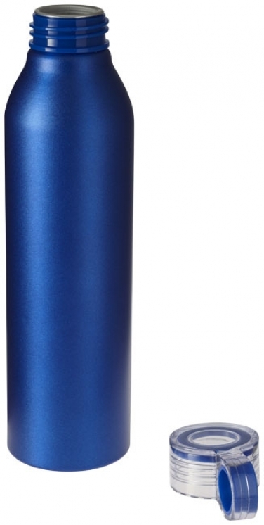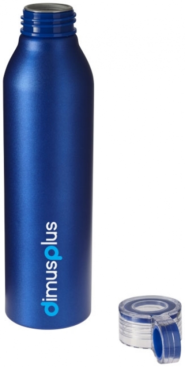 Aluminiowa butelka sportowa Grom. Konstrukcja z pojedynczymi ściankami. Przekręcane. szczelne wieczko z kolorowym uchem. Poręczna. Matowe, metaliczne kolorowe wykończenie. Pojemność to 650 ml. Aluminium.