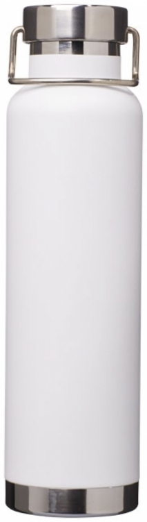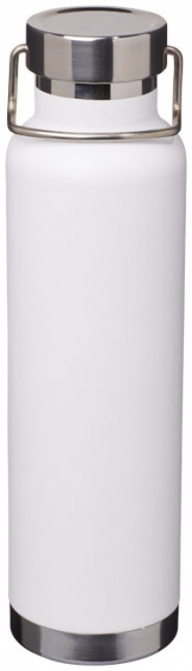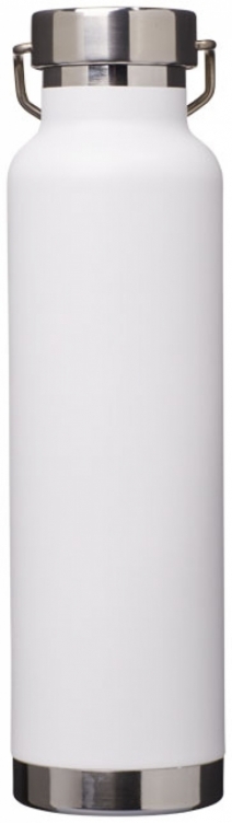 Butelka Thor z miedzianą izolacją próżniową. Wytrzymała konstrukcja z podwójnymi ściankami ze stali nierdzewnej z miedzianą izolacją próżniową, dzięki czemu napoje pozostają zimne przez 48 godzin i gorące przez minimum 12 godzin. Taka konstrukcja zapobiega kondensacji na zewnątrz butelki. Modne, trwałe wykończenie proszkowe. Przekręcane, szczelne wieczko z wytrzymałym uchwytem ze stali nierdzewnej. Duży otwór dla wygodnego napełniania i nalewania. Idealna do przechowywania kostek lodu. Pojemność to 650 ml. Całość zapakowana jest w pudełko upominkowe Avenue. Stal nierdzewna.