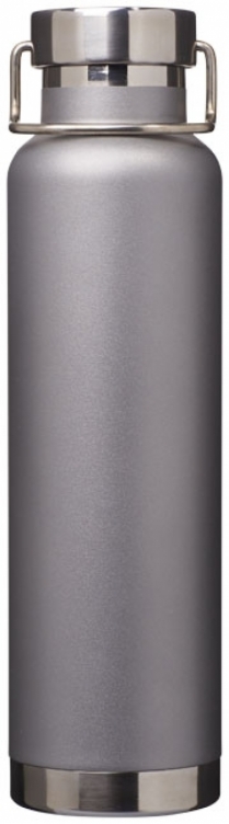 Butelka Thor z miedzianą izolacją próżniową. Wytrzymała konstrukcja z podwójnymi ściankami ze stali nierdzewnej z miedzianą izolacją próżniową, dzięki czemu napoje pozostają zimne przez 48 godzin i gorące przez minimum 12 godzin. Taka konstrukcja zapobiega kondensacji na zewnątrz butelki. Modne, trwałe wykończenie proszkowe. Przekręcane, szczelne wieczko z wytrzymałym uchwytem ze stali nierdzewnej. Duży otwór dla wygodnego napełniania i nalewania. Idealna do przechowywania kostek lodu. Pojemność to 650 ml. Całość zapakowana jest w pudełko upominkowe Avenue. Stal nierdzewna.