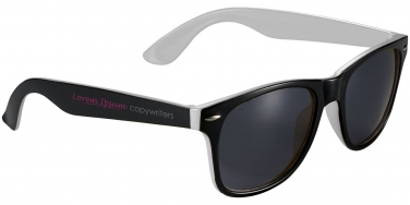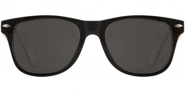 Okulary przeciwsłoneczne Sun Ray – czarne z kolorowymi wstawkami. Retro stylistyka, dwa stopnie przyciemnienia, kolorowe wykończenie po wewnętrznej stronie i czarne soczewki kategorii 3. Zgodne z normami EN ISO 12312-1 i UV400. Plastik PC.