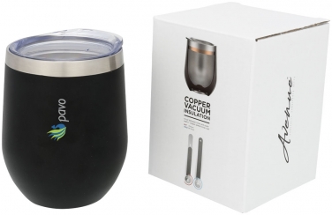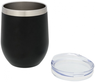 Corzo Copper izolowany próżniowo kubek. Izolowany próżniowo miedziany kubek Corzo ma dwuścienną konstrukcję próżniową z miedzianą izolacją, co oznacza, że utrzymuje napoje gorące przez 8 godzin i chłód przez 24 godziny. Konstrukcja zapobiega kondensacji na zewnątrz bębna. Łatwe popijanie, nasuwana pokrywa. Zawiera powłokę proszkową na zewnętrznym korpusie. Szeroki otwór do wygodnego napełniania i nalewania. Pojemność objętościowa to 350 ml. Prezentowany w pudełku upominkowym Avenue. Stal nierdzewna.