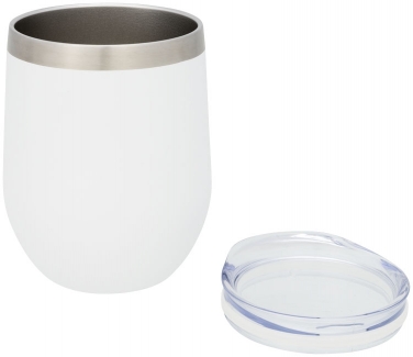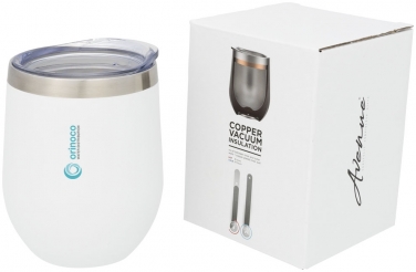 Corzo Copper izolowany próżniowo kubek. Izolowany próżniowo miedziany kubek Corzo ma dwuścienną konstrukcję próżniową z miedzianą izolacją, co oznacza, że utrzymuje napoje gorące przez 8 godzin i chłód przez 24 godziny. Konstrukcja zapobiega kondensacji na zewnątrz bębna. Łatwe popijanie, nasuwana pokrywa. Zawiera powłokę proszkową na zewnętrznym korpusie. Szeroki otwór do wygodnego napełniania i nalewania. Pojemność objętościowa to 350 ml. Prezentowany w pudełku upominkowym Avenue. Stal nierdzewna.