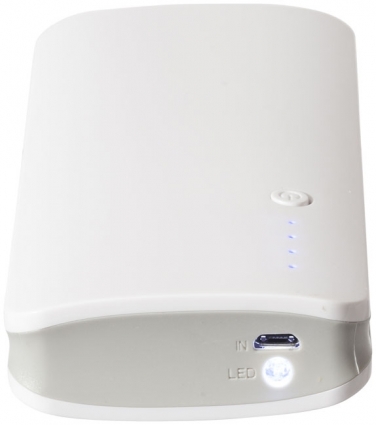 Powerbank 10000 mAh Spare. Powerbank Spare zawiera akumulator litowo-jonowy klasy A o pojemności 10000 mAh i latarkę, która może być używana w nocy. Pozwala na jednoczesne ładowanie maksymalnie trzech urządzeń z maksymalną mocą 5V / 2.1A (wyjście 1: 5V / 1A, wyjście 2: 5V / 1A i wyjście 3: 5V / 2.1A). Cztery niebieskie wskaźniki LED pokazują pozostałą pojemność baterii powerbanku. Zawiera kabel ładujący USB na Micro USB. Zapakowany w białe pudełko upominkowe Avenue. Plastik ABS.
