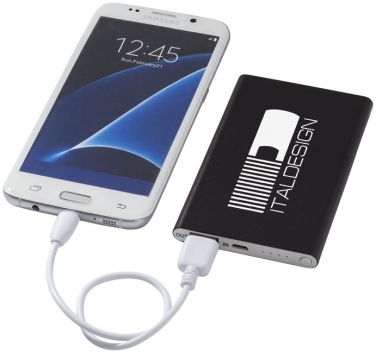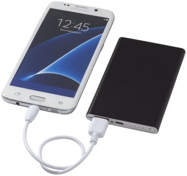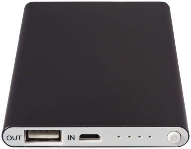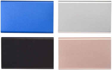 Aluminiowy power bank Pep 4000 mAh. Wąski, lekki, aluminiowy power bank z litowo-polimerowym akumulatorem klasy A o pojemności 4000 mAh. Kontrolka LED świeci się podczas ładowania i pokazuje stan naładowania power banku. Moc pobierana 5 V/1 A, moc wyjściowa 5 V/1 A. W zestawie z kablem USB. Pakowany w białe pudełko upominkowe. Aluminium.