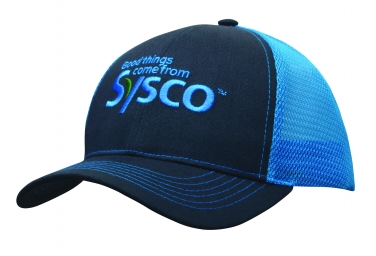 gruba bawełna drapana, usztywniana, 6 paneli,  kontrastowe panele tylne z siatki i kontrastowe szwy na daszku, zapięcie-rzep
