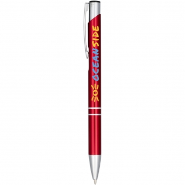 Długopis anodowany Alana. Długopis włączany przyciskiem. Korpus aluminiowy z częściami z ABS i stalowym klipsem.