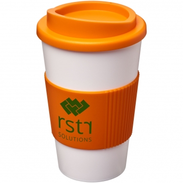 Kubek termiczny z serii Americano® o pojemności 350 ml z uchwytem. Dwuwarstwowy, izolowany kubek z zakręcaną pokrywą odporną na zalanie, z silikonowym uchwytem. Pojemność wynosi 350 ml. Mieszaj i łącz kolory, aby stworzyć idealny kubek. Skontaktuj się z działem obsługi klienta, aby uzyskać informacje o dodatkowych opcjach kolorystycznych. Wykonano w Wielkiej Brytanii. PP tworzywo sztuczne, silikon.