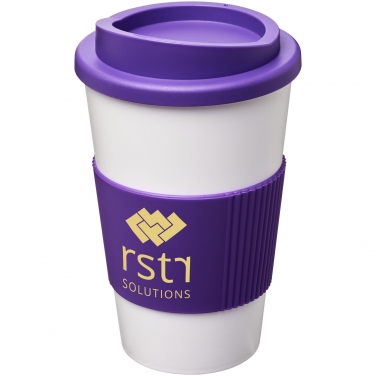 Kubek termiczny z serii Americano® o pojemności 350 ml z uchwytem. Dwuwarstwowy, izolowany kubek z zakręcaną pokrywą odporną na zalanie, z silikonowym uchwytem. Pojemność wynosi 350 ml. Mieszaj i łącz kolory, aby stworzyć idealny kubek. Skontaktuj się z działem obsługi klienta, aby uzyskać informacje o dodatkowych opcjach kolorystycznych. Wykonano w Wielkiej Brytanii. PP tworzywo sztuczne, silikon.