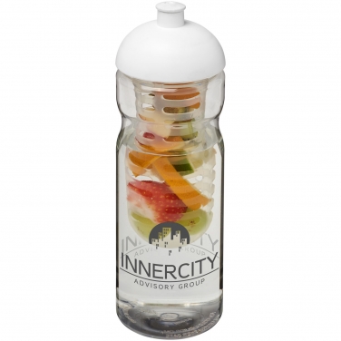 Bidon H2O Base® z wypukłym wieczkiem o pojemności 650 ml z możliwością przyrządzania wody smakowej. Jednowarstwowa sportowa butelka o ergonomicznym kształcie. Bidon wykonano z tworzywa PET nadającego się do recyklingu. Wyposażony jest w odporną na zalanie pokrywę z dzióbkiem typu push-pull i wyjmowanym zaparzaczem, który pozwala dodać ulubiony smak owocowy do napoju. Pojemność wynosi 650 ml. Mieszaj i łącz kolory, aby stworzyć idealną butelkę. Skontaktuj się z działem obsługi klienta, aby uzyskać informacje o dodatkowych opcjach kolorystycznych. Wykonano w Wielkiej Brytanii. Tworzywo PET, PP.