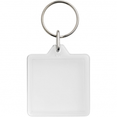 Kwadratowy brelok Vial. Prostokątny breloczek U1 z metalowym pękiem na klucze. Metalowy pierścień cechuje płaski profil, który idealnie nadaje się do wysyłek. Wymiary wkładu do druku: 3,2 cm x 3,2 cm. GPPS tworzywo sztuczne.