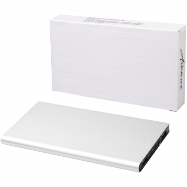 Aluminiowy powerbank Plate 8000 mAh. Aluminiowy powerbank Plate 8000 mAh wyposażony jest w litowo-polimerową baterię o pojemności 8000 mAh klasy A i cechuje go smukła konstrukcja. Dioda LED świeci się w trakcie ładowania i wyświetla pozostałą pojemność baterii w powerbanku. Wyposażony jest w wejście i wyjście 5V/2A i wykonany został z trwałego aluminium. W zestawie znajduje się kabel ładujący USB do Micro-USB. Dostarczane w białym pudełku podarunkowym Avenue. Aluminium.