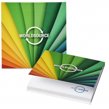 Karteczki samoprzylepne Sticky-Mate® 75x75 w miękkiej okładce. Karteczki samoprzylepne Sticky-Mate® z wygodną miękką okładką wykonaną z papieru. Składa się z czystych kartek o gramaturze 80g/m2. Standardowo 50 kartek, dostępny również w wersjach 25 lub 100 kartek. Możliwość pełnego, kolorowego zdobienia każdego arkusza. Miękka okładka nie tylko chroni przed uszkodzeniem zawartości, ale stanowi również dodatkową przestrzeń reklamową. Wymiar arkusza: 75x75mm. Papier.