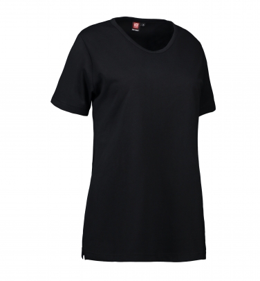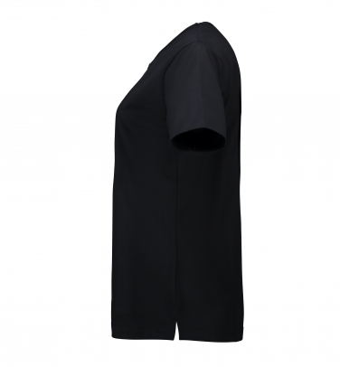 Bardzo wytrzymały damski t-shirt z okrągłym dekoltem i rozcięciami po bokach. Koszulka została poddana procesowi wykurczania w bardzo wysokiej temperaturze zarówno przed, jak i po farbowaniu, co dodatkowo zapewnia stabilność i trwałość. Lekko dopasowana.