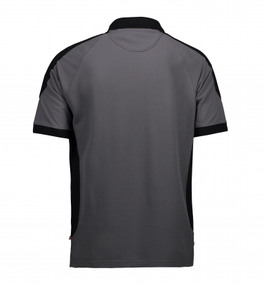 Bardzo wytrzymała, dwukolorowa koszulka polo. Taśmy wzmacniające na linii szyi i ramion. Wstawka w kształcie półksiężyca wewnątrz na karku. Koszulka została