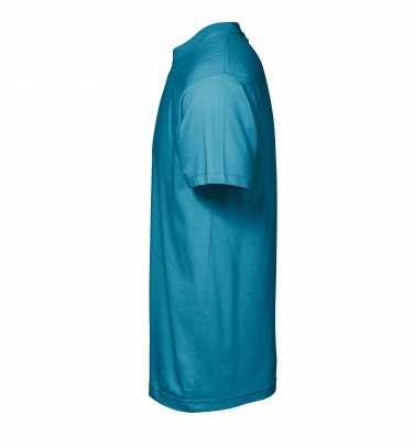 Klasyczny t-shirt z okrągłym dekoltem, wykończonym poczwórnym ściągaczem. Taśmy wzmacniające na karku i w ramionach. Zachowuje swój kształt nawet po wielokrotnym praniu.