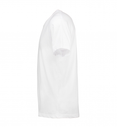 Klasyczny t-shirt z okrągłym dekoltem, wykończonym poczwórnym ściągaczem. Taśmy wzmacniające na karku i w ramionach. Zachowuje swój kształt nawet po wielokrotnym praniu.
