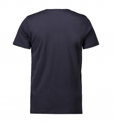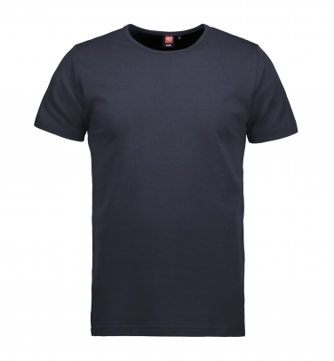 Klasyczny t-shirt wykonany z dzianiny o splocie interlock i wykończeniem antypilingowym. Okrągły dekolt wykończony wąskim ściągaczem.