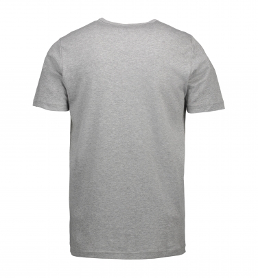 Klasyczny t-shirt wykonany z dzianiny o splocie interlock i wykończeniem antypilingowym. Okrągły dekolt wykończony wąskim ściągaczem.