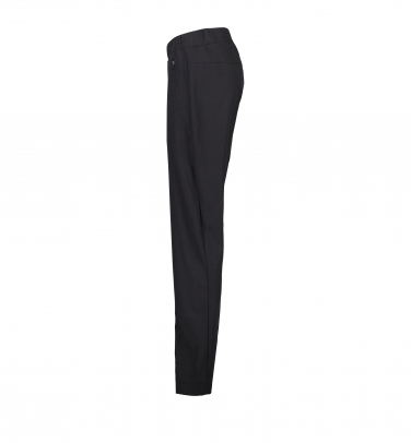 Idealne do pracy lub wypoczynku. Wygodny elastyczny materiał, który nie gniecie się. Elastyczny pas w talii i wewnętrzny sznurek. Dwie przednie kieszenie zapinane na zamek błyskawiczny. Wąskie nogawki.