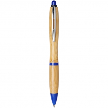 Przyjazny dla środowiska długopis automatyczny z korpusem wykonanym z bambusa, zaakcentowanym chromowanym klipsem i plastikowymi wykończeniami z plastiku ABS. Kolor materiału bambusowego może się różnić.