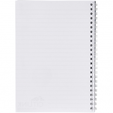 Notes na spirali Desk-Mate® w formacie A5. Notatnik zawiera białą lub czarną przedziałkę. Dostępny w różnych rozmiarach. Obity w lakierowaną, twardą okładkę (250g/m2) z czystymi kartkami (80g/m2). Standardowo 50 kartek, dostępny również w wersji 80 kartek. Możliwość zdobienia okładki i każdego arkusza.