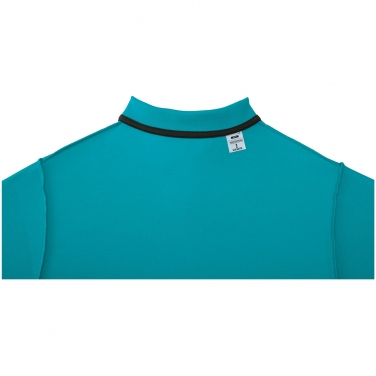 Możliwość brandingu wewnątrz. Główna metka przygotowana do odcięcia lub oderwania dla lepszego komfortu. Kołnierzyk z płaskiego splotu. Plisa z dwoma guzikami. Podwójny scieg. Guziki w kolorze materiału. Kontrastowa taśma wzmacniająca na karku.