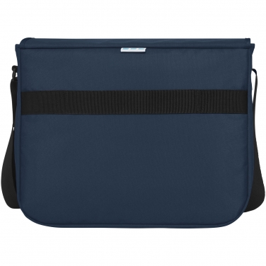 Ekologiczna torba na laptopa z plastiku z recyclingu z certyfikatem GRS wykonana w 40 % z materiałów pochodzących z recyklingu. Posiada dużą główną komorę zamykaną na zamek błyskawiczny z wyściełanym pokrowcem na 15 cali laptopa i przednią komorę (obie zamykane na rzep). W zestawie zamknięcie z pokrywą oraz z zapinaną na zamek kieszonką i zapięciem na klamrę. Posiada wygodny wyściełany i regulowany pasek na ramię i prowadnice wózka z tyłu.