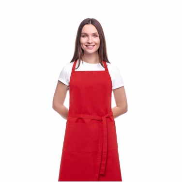 Fartuch zgodny z zasadami zrównoważonego rozwoju wykonany z bawełny organicznej o gramaturze 200 g/m² z certyfikatem GOTS. Posiada 2 przylegające kieszenie o łącznych wymiarach 45 x 20 cm oraz wiązanie z tyłu o długości 1 m. Długość paska na szyję: 55 cm.