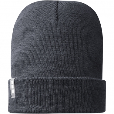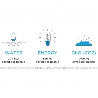 Przyjazna dla środowiska odzież służąca do celów promocyjnych. Czapka jednowarstwowa z dwukrotnie wywiniętym brzegiem Metka z logo. Włókno Polylana® to niskoemisyjna alternatywa dla 100% włókien akrylowych i wełnianych, oszczędzająca wodę, energię i redukująca emisję CO2 podczas procesu produkcji i barwienia. W porównaniu z włóknem akrylowym, na każdą czapkę z włókien Polylana® przypadają następujące oszczędności: 2,77 litra wody, 5,16 MJ energii i 0,06 kg GhG (CO2). Oszczędności wpływu oparte są na zatwierdzonych danych oceny cyklu życia (LCA).