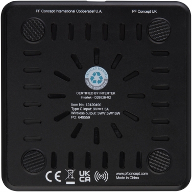 Bezprzewodowa ładowarka indukcyjna wykonana z certyfikowanego przez RCS plastiku ABS pochodzącego z recyklingu. RCS (Recycled Claim Standard) to standard pozwalający zweryfikować zawartość produktów pochodzących z recyklingu w całym łańcuchu dostaw. Podłącz ładowarkę do komputera lub laptopa i umieść na niej urządzenie, aby rozpocząć ładowanie. Moc wyjścia bezprzewodowego wynosi 10 W (maks.) w celu szybkiego ładowania. Kompatybilna z wszystkimi urządzeniami Qi (iPhone 8 lub nowszy oraz urządzenia z systemem Android, które obsługują ładowanie bezprzewodowe). Dostarczane w pudełku upominkowym wraz z instrukcją obsługi (oba te przedmioty wykonane są z materiałów ekologicznych).